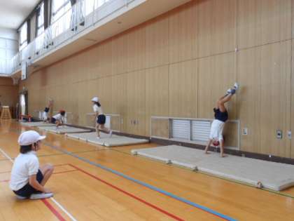 3年生は、マット運動です!今日は、逆立ちをしました。