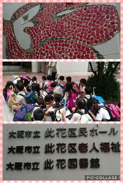 きちんと整列し、町の様子を学習しながら図書館に到着。