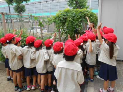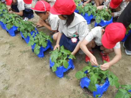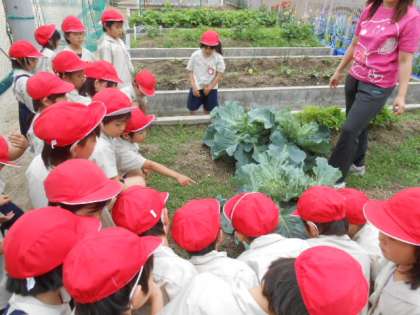 1年生みんなで、他学年が育てている野菜や植物を見に行きました!