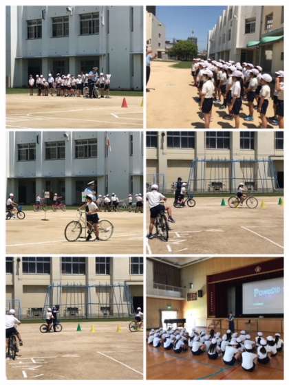3時間目は、交通安全学習がありました。此花警察の方に来て頂き、交通ルールを学習するというものです。4年生は自転車に関する交通ルールを学びました。実際に自転車に乗って学習したり、DVDを見て学習したりと、分かりやすく様々なことを教えていただきました。子ども達は普段の自転車の乗り方について考えることができました。