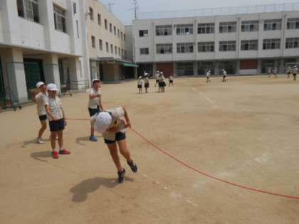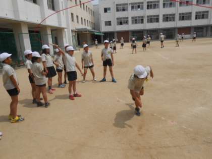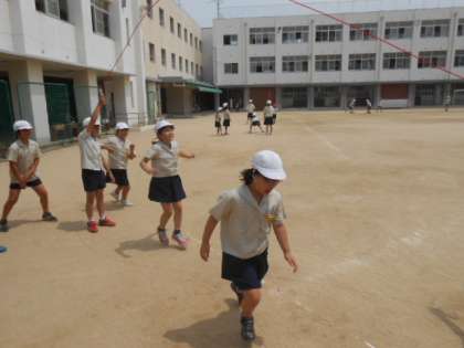 5年1組が、昼休み「8の字回旋」に挑戦していました。