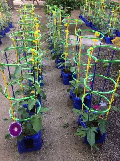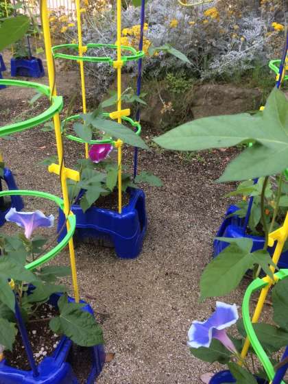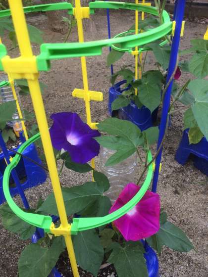 子どもたちが毎日お世話をしているアサガオが次々咲いています。