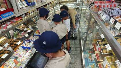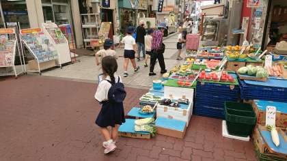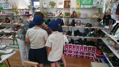 今日は商店街に町たんけんに行きました。子どもたちは、5人一組になってお店の方にインタビューをしたり、写真をとったりします。