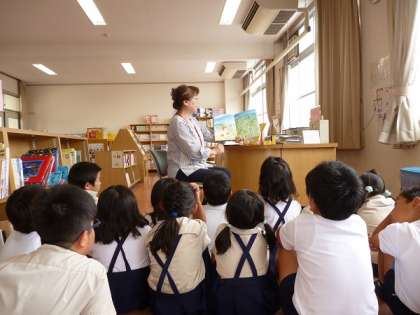 毎週、図書補助員の羽生先生に読み聞かせをしていただいています。