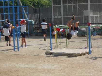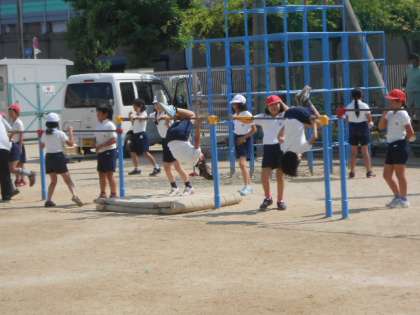 4年生は6時間目運動場で鉄棒運動です。雨の日には学習できないので今日は貴重な日です。