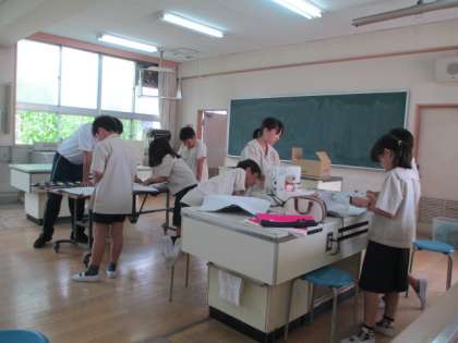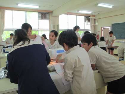 家庭科室では、5年生がナップザックの製作を急ピッチで進めています。