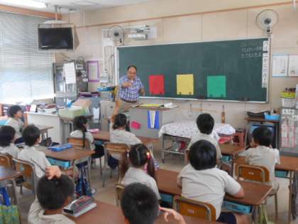 伝法小学校の栄養教諭のT先生にお越し頂いて栄養について学習しました。