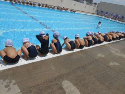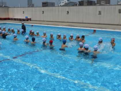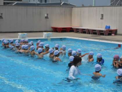 1年生は初めてのプールです!2年生と水のかけ合い!水と仲良くなろう♪