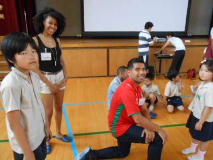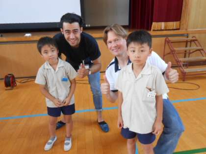 一緒に給食を食べるために講師の方を一人づつ教室に案内します♪
