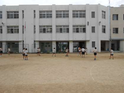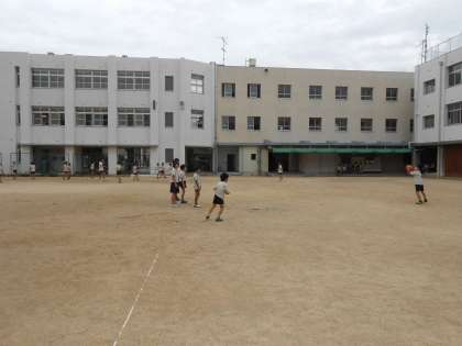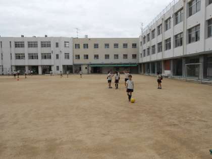 梅雨で、雨が降ったりやんだりの天候です。でも子どもたちは始業前、すこしの間も運動場に出て遊んでいます。