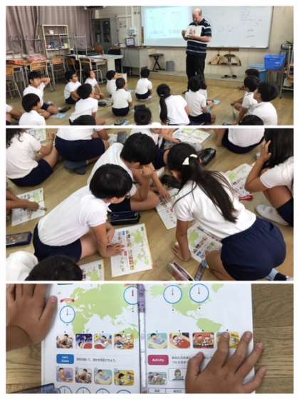 今学期も英語学習が始まりました!久しぶりのクリス先生との再会に、子ども達はとても嬉しそう♪今日は、曜日や天気、時間の表現の仕方をしっかりと学習することができました!