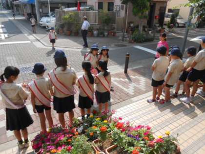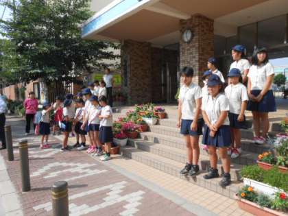 強い日差しに負けずに、今日も子どもたちは元気なあいさつです!