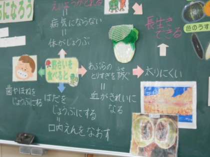 野菜を食べるとどんないいことがあるか、みんなで考えました。