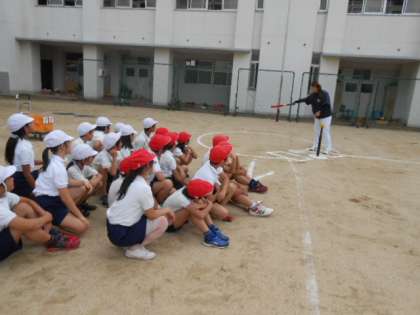 子ども達もティーボールは初めてなので、一生懸命説明を聞いています!