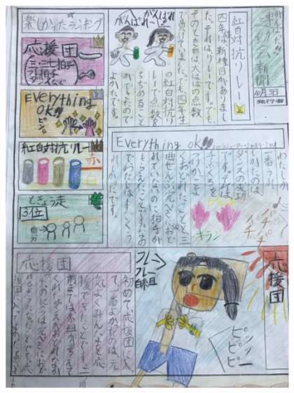 子ども達が精一杯がんばった運動会!その運動会の思い出を昨日から少しずつ「運動会新聞」にまとめています。4年生の出場競技・演技の他にも、応援団や係の仕事のことなど、書きたいことがたくさん!みんな集中して書いていました。明日には全員完成する予定です♪
