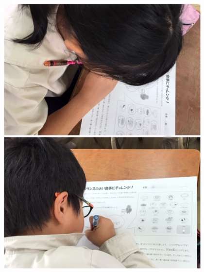 今日は、他校から栄養教諭に来ていただいて、「バランスのよい食事をとろう」をテーマに学習をしました。普段は何気なくとっている食事ですが、「自分の体のために、栄養のバランスを考えて食事をとる」ということの大切さを学ぶことができました!