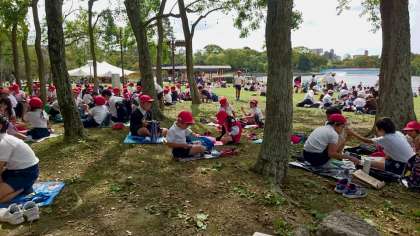 オリエンテーリングも無事終わり、みんなで楽しくお弁当タイムです♪
