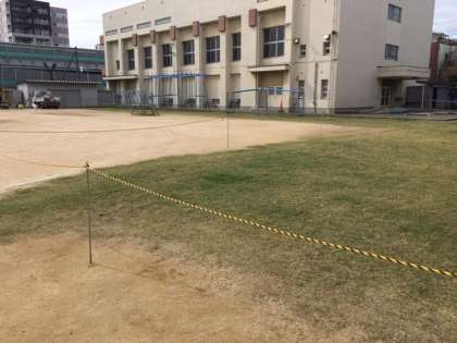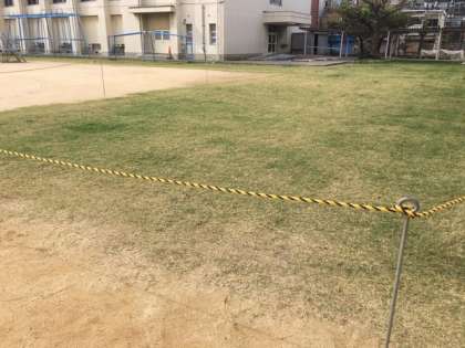 本日、運動場の芝生に冬芝の種をまきました。芝が生育するのにしばらく芝生には入れません。ご来校時にはご注意ください。