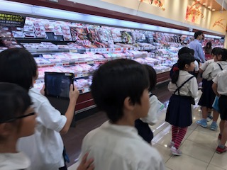 今日は、スーパーマーケットの社会見学でした。普段入ることができないバックヤードも見学させていただき、商品を売り場に並べるまでに、色々な仕事があるのを知ることができました。