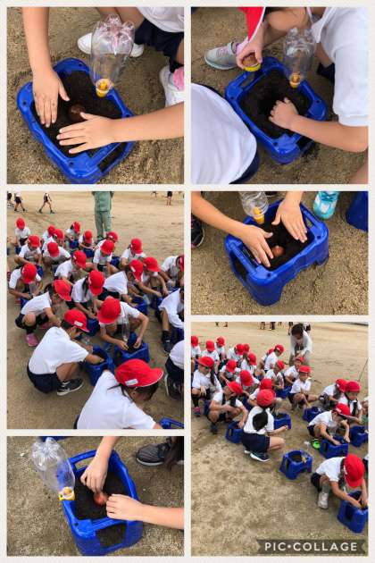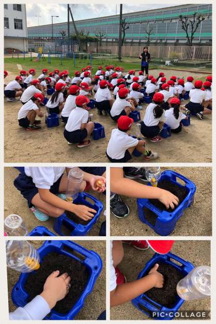 3時間目に1組2組合同でチューリップの球根を植えました!