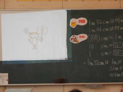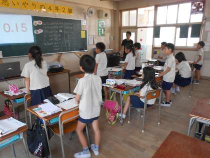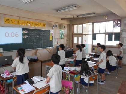 4年2組の担任は昨日は国語科で授業研究を行いましたが、勢いに乗って今日は算数の授業研究を行いました。7月のこの時期に2日連続で授業を公開するなんて何とエネルギッシュなんでしょうか!子どもたちもプロジェクターを使った授業に意欲的に取り組みました。
