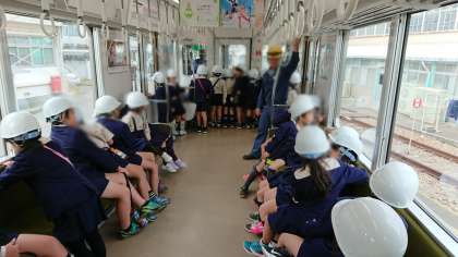 敷地内には、本物と同じ、阪神電車が止まっています。中に乗せてもらいました。2年生だけの貸し切り列車のようで、みんな大喜びでした。特に盛り上がったのは、洗車の機械を通るときです。
