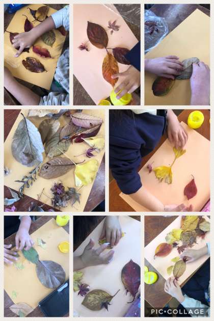 貼りにくい落ち葉に苦戦しながらも、みんな思い思いに作品を作りっていました。