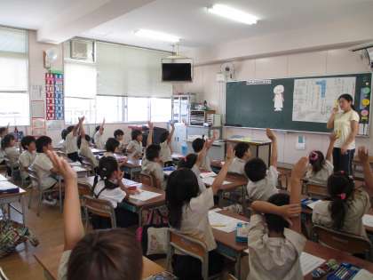今日は、「きゅうしょくはかせになろう」をめあてに梅香小学校の給食について学習しました。