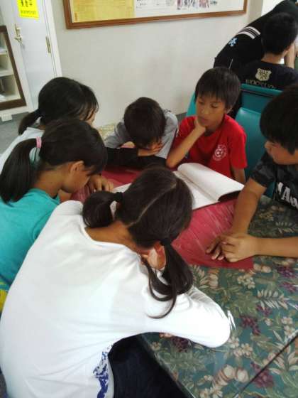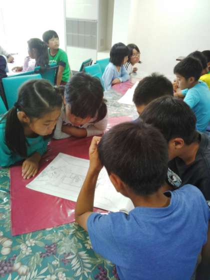 宿舎から登山の様子の全容を見ることができます。子どもたちは谷底の宿舎を見ながらハイキングを楽しみました。