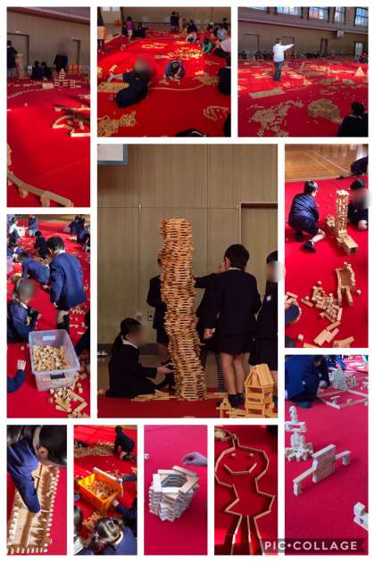 2、3時間目に「森のつみ木広場」と言う活動をしました。