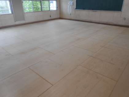 南校舎の床補修工事が進んでいます。全面張り替えです。2学期は素晴らしい学習環境になります。