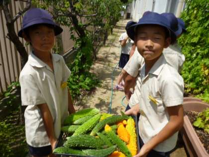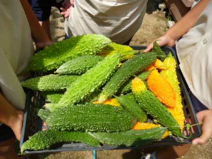 今週、お天気がよかったのでゴーヤが成長しました。収穫してみるとこんなにたくさんとれました。