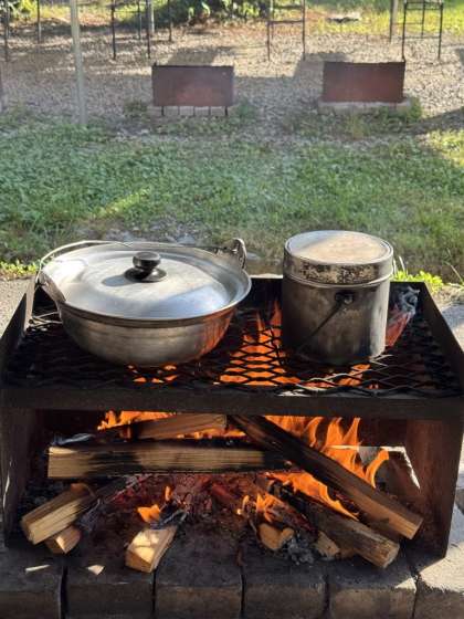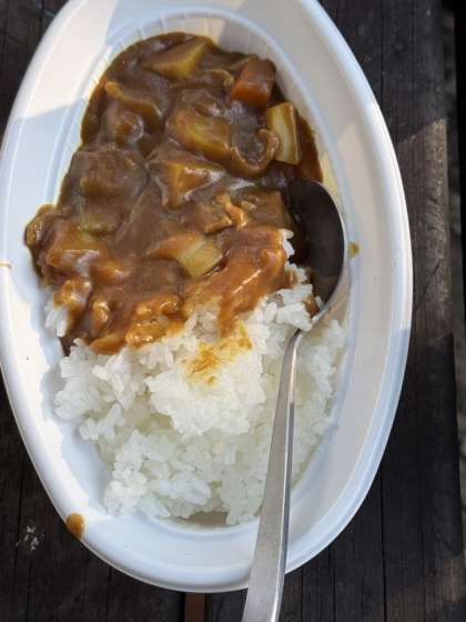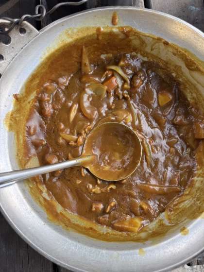 スタッフの方にカレーの作り方を説明していただき、活動班で協力して調理します。