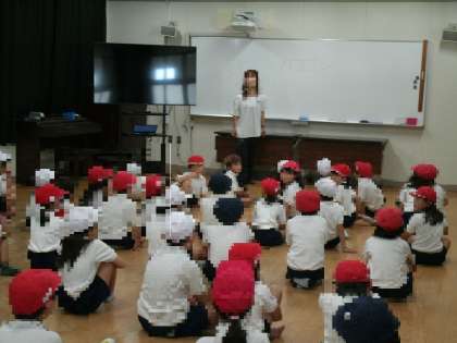 運動会にむけ、多目的室で、活動内容について話をしていました。