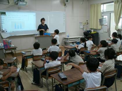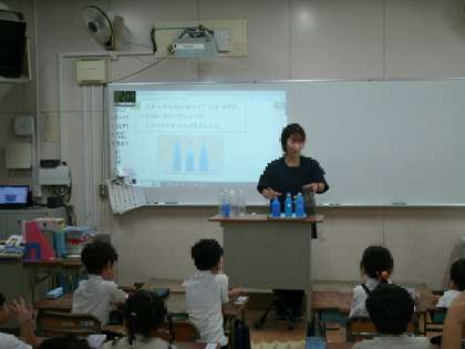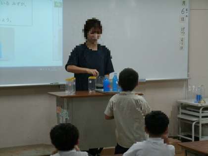 前に色水の入った容器が登場すると、子どもたちは目を輝かせて一生懸命考えていました。