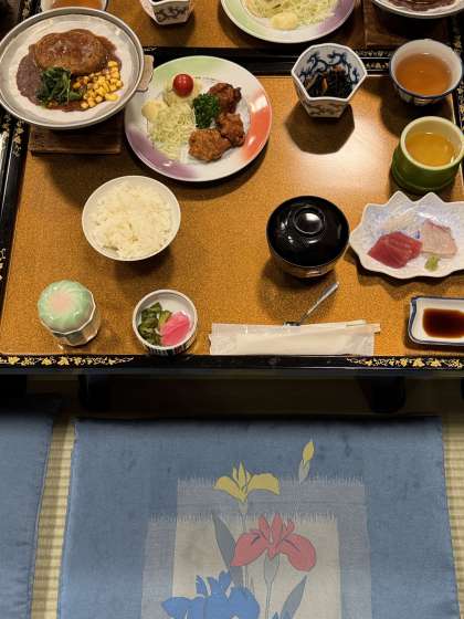 お刺身、ハンバーグ、唐揚げなど、盛りだくさんでした。