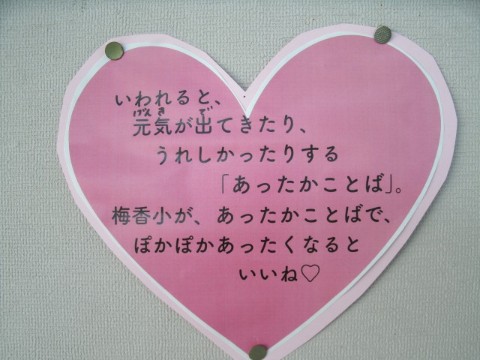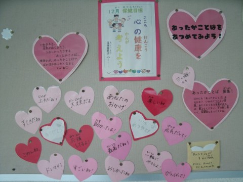 12月の保健目標が「心の健康を考えよう」ということで、言われると元気が出たりうれしかったりするような「あったかことば」を紹介しています。