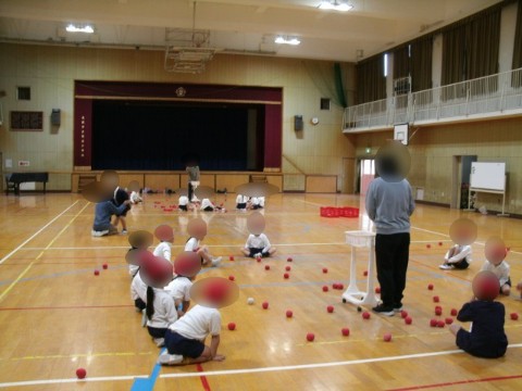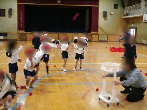 運動会の時とは違い、写真のような小さなかごに玉を入れます。