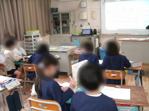 5年生の教室では、教室の前を通りかかったところ、「ぜひ、合唱を聞いてほしい。」とのことでしたので、聞かせていただきました。