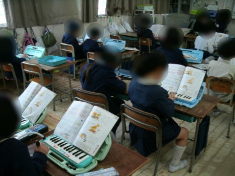 鍵盤ハーモニカで、「子ぎつね」の演奏の練習をしていました。