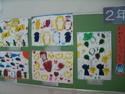 廊下・階段にある掲示板から、1年生と2年生の作品を紹介します。