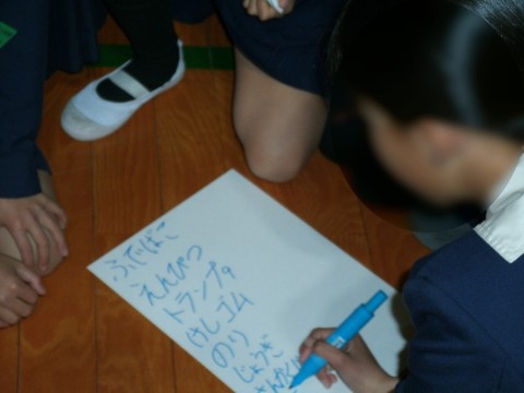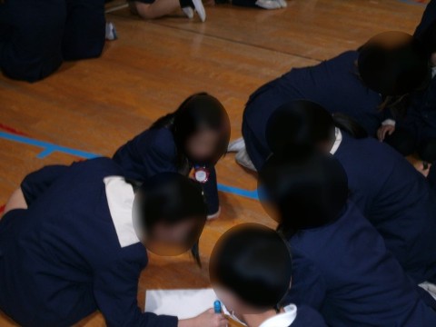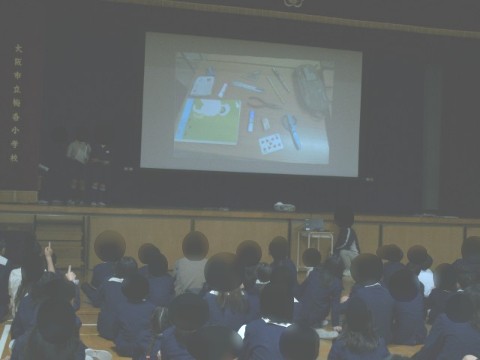 今日の児童集会は、写真を20秒間見た後、たてわり班で相談して、写っていたものを書く「記憶力ゲーム」でした。