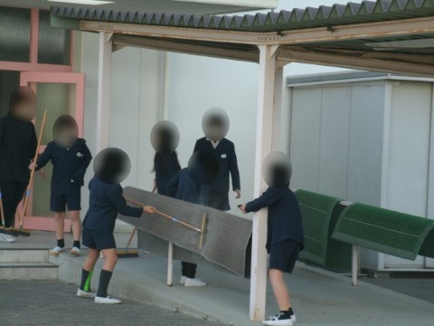 講堂の椅子ならべ、廊下やトイレの掃除など、一生懸命取り組んでいました。