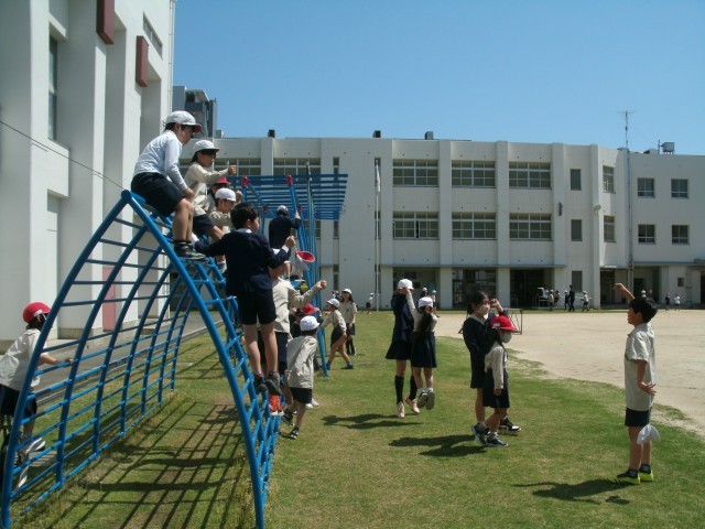休み時間になるとたくさんの子どもたちが運動場に出てきます。今日のように心地よい天気の日には子どもたちの気持ちも自然とはずみます。子どもたちの元気な笑い声が運動場に響いています。梅香小学校の子どもたちは遊ぶのも大好きです。友だちとなかよく過ごしているようすを見るのはとても気持ちがいいですね。みんなキラキラ輝いて見えます。