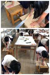 図画工作科ではのこぎりを使い木を切り、壁掛け飾りなどを作る学習をしています。 ...