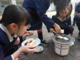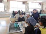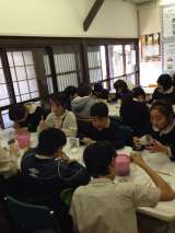 何やら家庭科室がにぎやかです。5年生が調理実習をしています。おいしいお茶とどら焼...