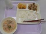 かすじる・・・鮭が入っています。体があたたまりそうです。 ぶたにくのごまだれやき...
