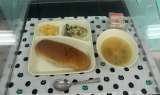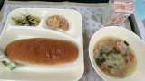 今日の献立は、鶏肉の唐揚げ、中華スープ、チンゲンサイともやしの甘酢和え、コッペ...