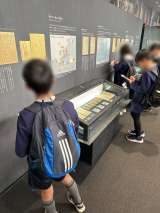 戦地からの手紙や当時の衣服を真剣に見学しています。 「こわいな」とつぶやく子も...