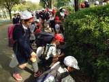 秋の様子を学習するために大野川緑陰道路に校外進出です。